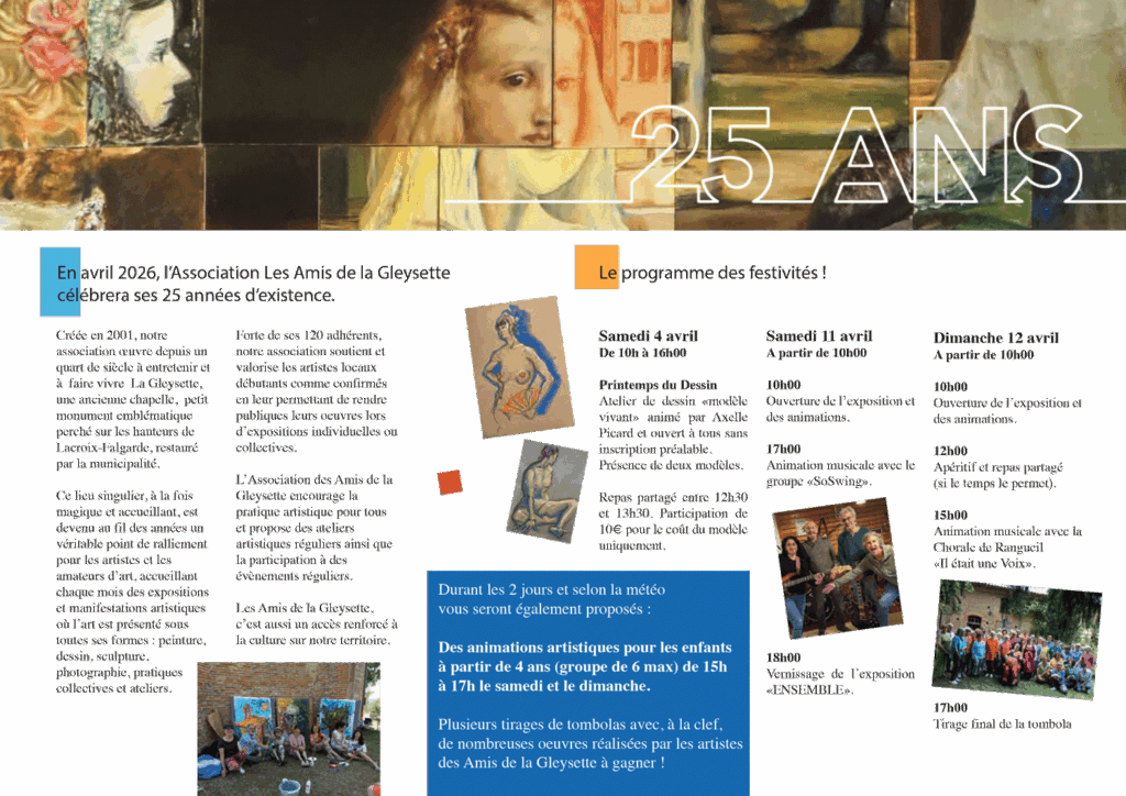 En avril 2026, l’Association Les Amis de la Gleysette célèbrera ses 25 années d’existence.